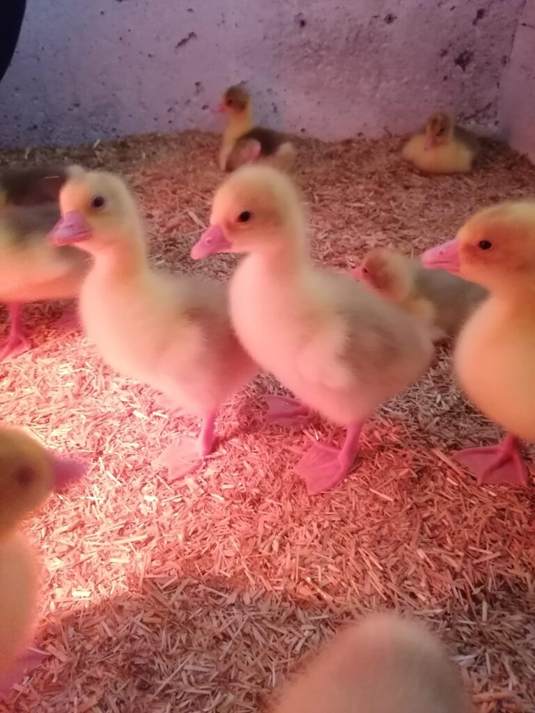 Seit mittlerweile 4 Wochen wohnen 50 Gänse(küken) bei uns. Die kleinen Flauschebällchen haben in den ersten Wochen ordentlich zugelegt und sind mittlerweile zu sehr aufgeweckten und neugierigen Langhälsen herangewachsen. Und da das Wetter es endlich zulässst können unsere Weidegänse nun raus ins frische Grün.