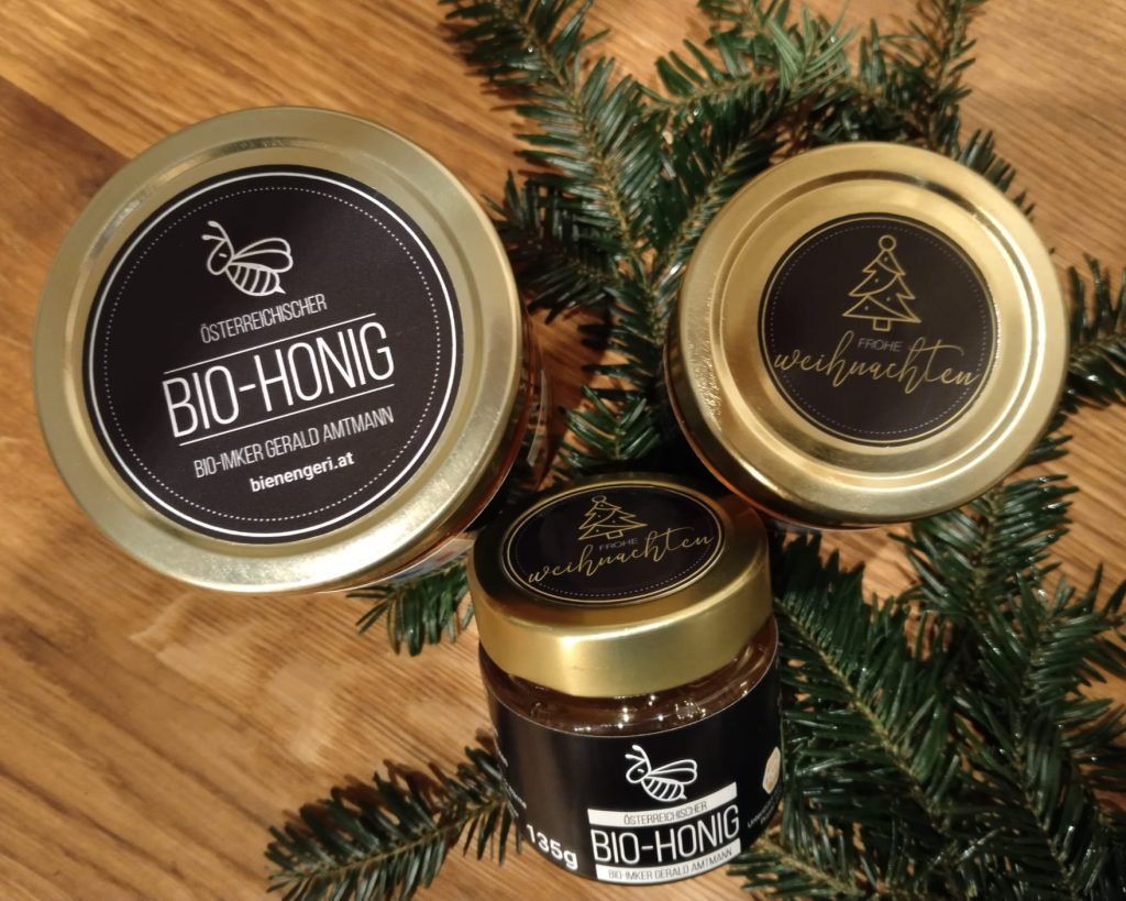 Also, viel ist leider nicht mehr übrig vom guten Bienengeri-Bio-Honig, bitte schnell zugreifen. Mit oder ohne Weihnachtsetikett 🎄